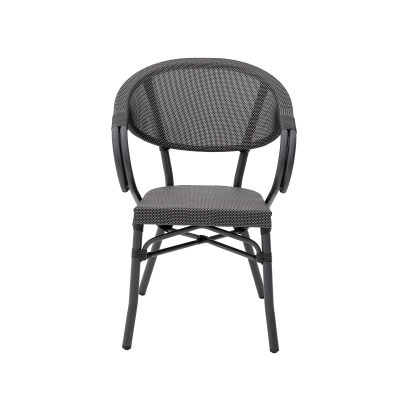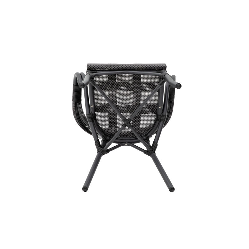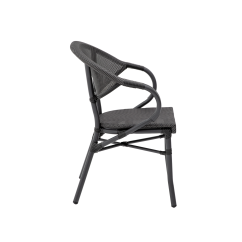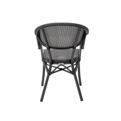 CAMILLO pasižymi kavinės laisvumu ir aiškia forma. Ovalus atlošas sklandžiai pereina į porankius, sukurdamas vientisą ir elegantišką siluetą. Juodai grafitinio atspalvio pynė suteikia modeliui gylio ir puikiai dera su medžiu, akmeniu ar metalu. Tai kėdė alaus sodams ir gastronominėms lauko erdvėms, padedanti kurti estetišką ir išbaigtą outdoor aplinką.