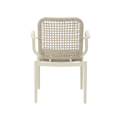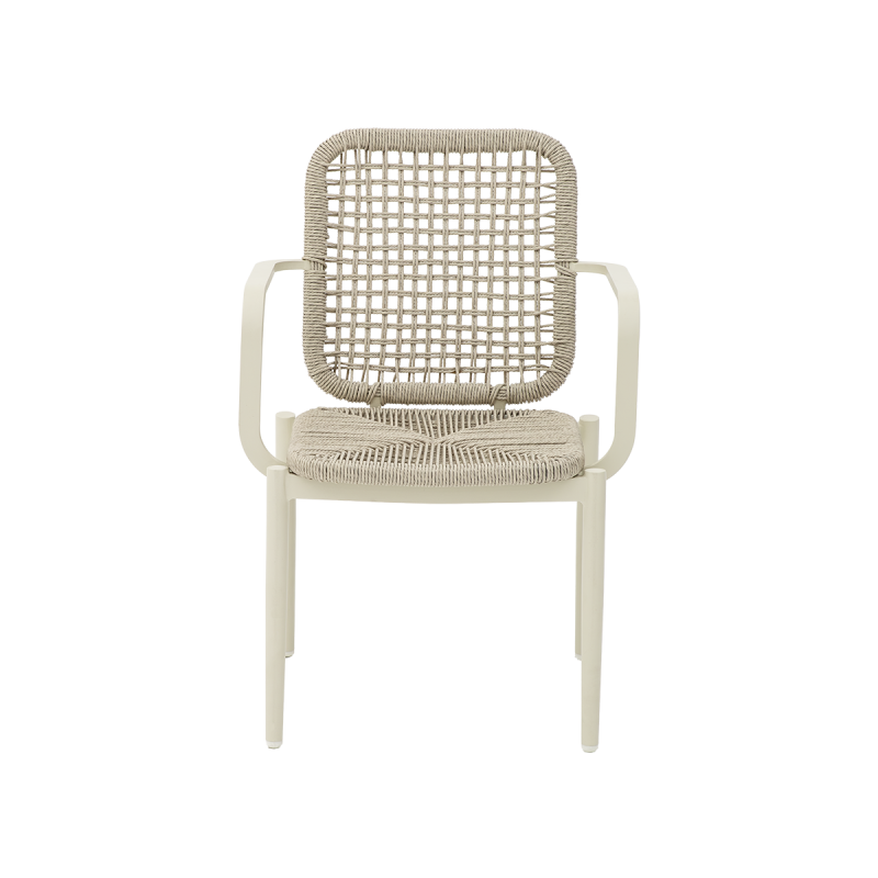 Sėdimoji dalis ir atlošas modelyje DIEGO pagaminti iš patvarių technorataninių virvių su Vortex pynimu, kurios išlaiko savo formą ir estetiką nepriklausomai nuo oro sąlygų. Medžiaga yra atspari UV spinduliams, todėl nepraranda savo savybių naudojant lauke. Tai sprendimas, sukurtas tokioms vietoms kaip lauko alaus sodai ar restoranų terasos, kur svarbus ilgaamžiškumas, greitas džiūvimas ir patikimumas kiekvieną dieną.