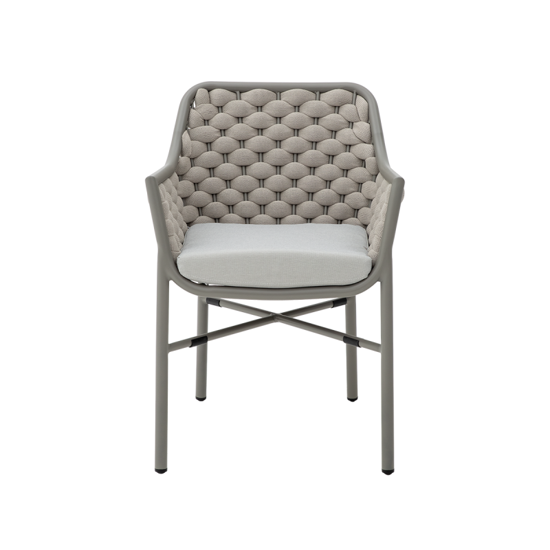 Kėdė MASSIMO išsiskiria išraiškinga forma ir kruopščiai išpintu paviršiumi, kuris suteikia jai charakterio ir vizualinio gylio. Uždara atlošo konstrukcija ir porankiai sukuria komfortiškesnę, „apgaubiančią“ sėdėjimo formą, palankią ilgesniam naudojimui. Puikiai tinka kaip kėdė lauko alaus sodams, terasoms ar pusiau atviroms restoranų erdvėms, kuriant vientisą ir tvarkingą aplinką.