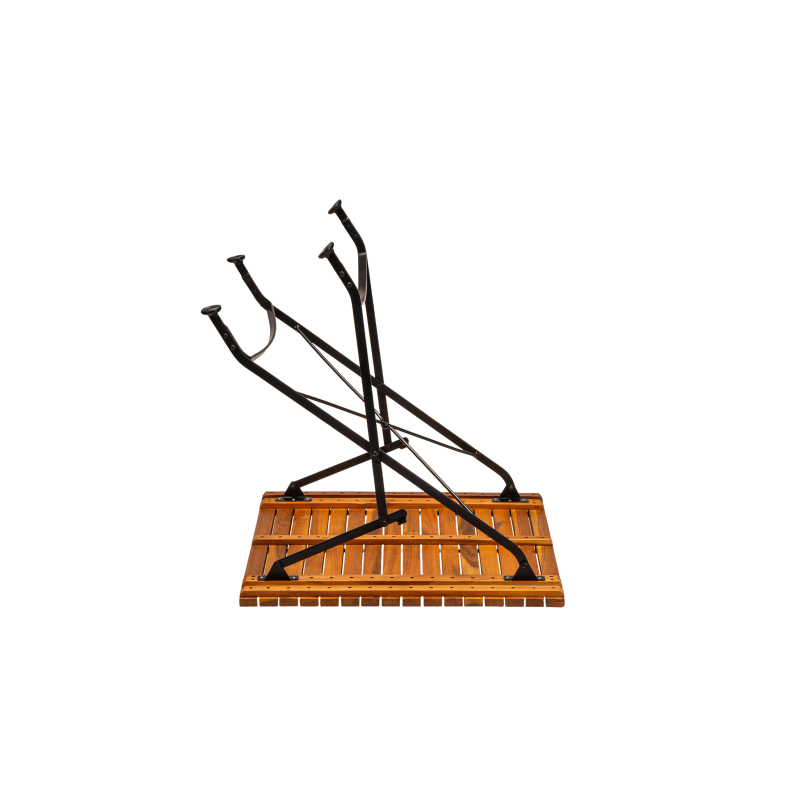 Dėl kompaktiškų matmenų (70x70 cm) stalas idealiai tinka mažesnėms erdvėms ir suteikia patogią vietą 2–4 asmenims. Sulankstoma konstrukcija leidžia lengvai laikyti ir greitai paruošti erdvę darbui gastronomijoje – tai ypač svarbu sezoniniuose lokaluose ir vietose, kur svarbus lankstus išdėstymas.