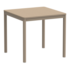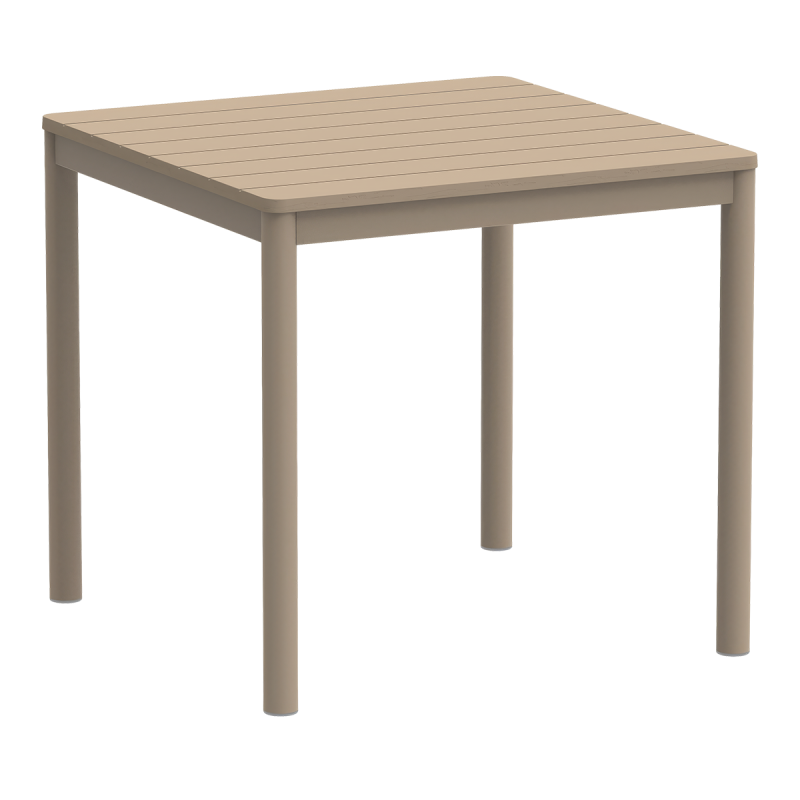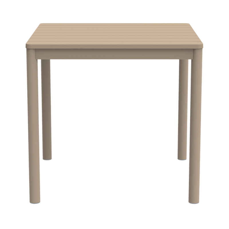 Aiški, geometrinė forma ir subtiliai frezuotas stalviršis suteikia šiam modeliui išskirtinį charakterį. TERRAZZA 80x80 tai ne anoniminis sodo stalas . Jo proporcijos padeda struktūruoti erdvę ir suteikia jai ritmą. Keturios stabilios kojos ir vientisa spalvinė gama kuria modernų, harmoningą vaizdą. Tai alaus sodo stalas, kuris puikiai atrodo tiek kompaktiškoje miesto aplinkoje, tiek atviroje patio erdvėje – taip pat gali būti naudojamas kaip baseino stalas.