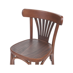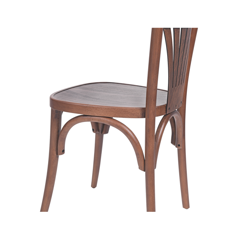 Elegantiška LEGEND medinės kėdės forma pasižymi sklandžiomis linijomis ir subtiliu profiliu, derinančiu klasiką su šiuolaikiniu minimalizmu. Būdingas vėduoklės formos atlošas suteikia jai lengvumo ir rafinuotumo, o lenkta buko medienos konstrukcija pabrėžia amatininkišką tikslumą. Dėl to šis modelis puikiai tinka įvairaus charakterio erdvėms – nuo jaukių kavinių ir restoranų iki elegantiškų viešbučių interjerų.