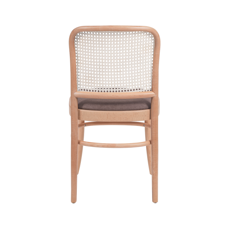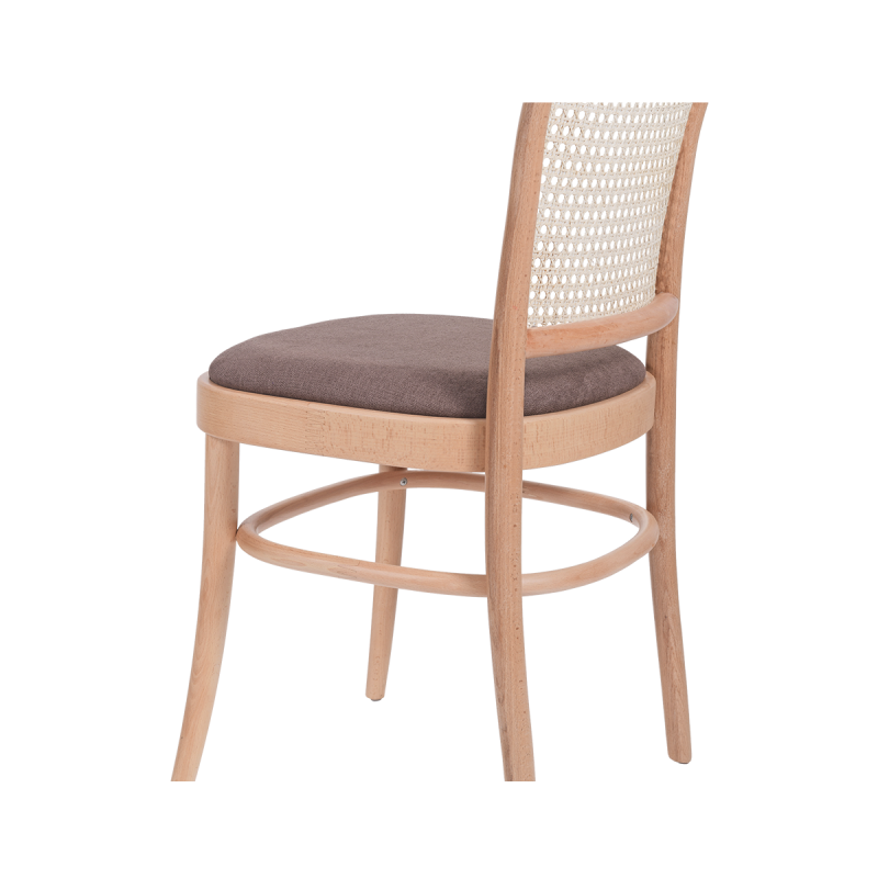 Lenkto medžio kėdė LOOMI 811 Rattan su apmušta sėdimąja dalimi – elegantiškas klasikinės formos ir padidinto komforto derinys . Lieknos konstrukcijos rėmas iš masyvo buko medienos bei ažūrinis atlošas iš natūralios pintos Rattan medžiagos suteikia modeliui lengvumo ir nesenstančio charakterio. Natūrali medžio spalva harmoningai dera HoReCa interjeruose. Tai medinė kėdė, sukurta intensyviam naudojimui restoranuose, kavinėse ir viešbučiuose, kur dizainas turi derėti su ilgaamžiškumu.